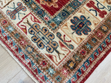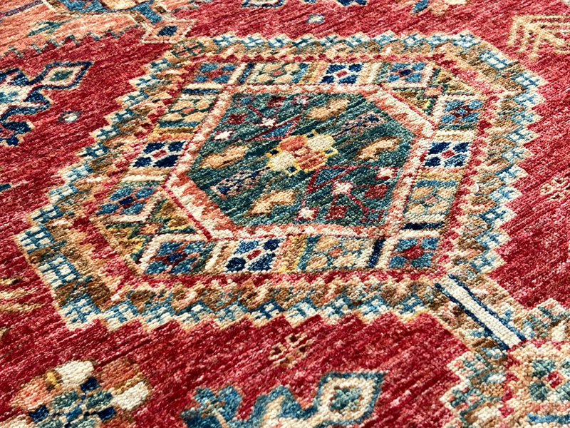 Kazak rug designs originate from Azerbaijan and take their name from the Gazakh region. Over the last century the Kazak rug designs have migrated across the rug weaving regions of central Asia, being embraced and adapted along the way. Kazak rugs now enjoy acclaimed status as a staple of the rug design world. The Kazak rug designs are typically bold, geometric and embracing a warm palette of jewel colours.