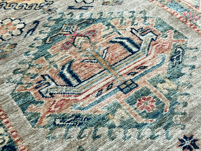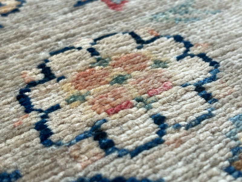 Our Ghazni Kazak rugs are woven in northern Afghanistan, mainly hand-knotted in people's homes as a supplementary source of household income. The wool is sourced from the Ghazni region, and hand-spun and dyed before going to looms for the highly skilled weavers to start work on their unique creation. Finally, once completed, the Kazak rugs are collected from the villages and cross the border to Pakistan to be washed and finished. This is where we source the Kazak rugs for our showroom - each one selected individually and in person.