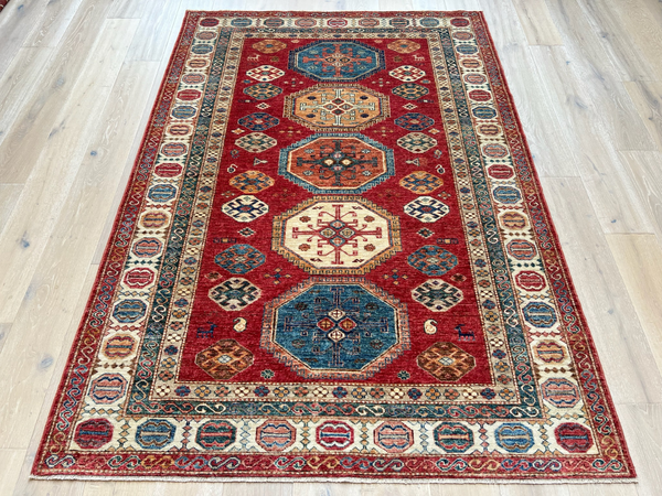 Hand woven in AfghanistanWool on wool2.31m x 1.76m7' 7" x 5' 9"