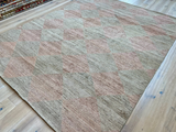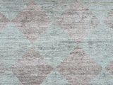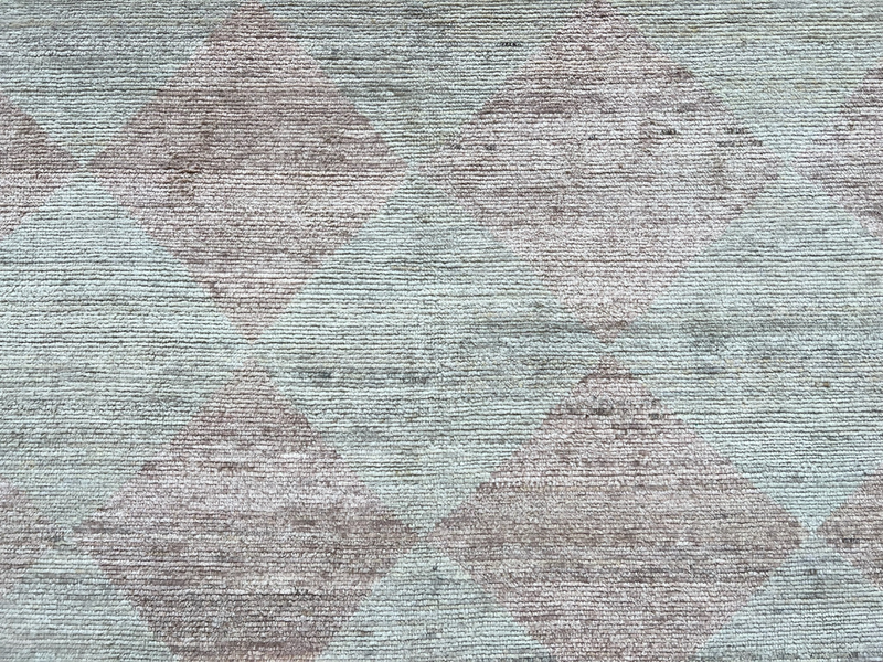 A soft diamond motif in muted tones set against a neutral ground.